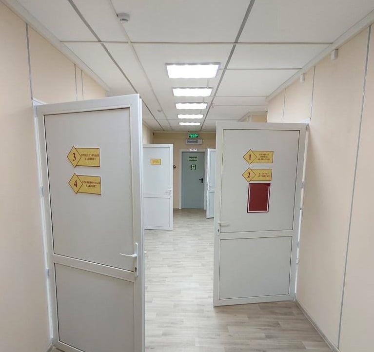 Сейчас в здании идут отделочные работы, в классах укладывают линолеум, красят стены