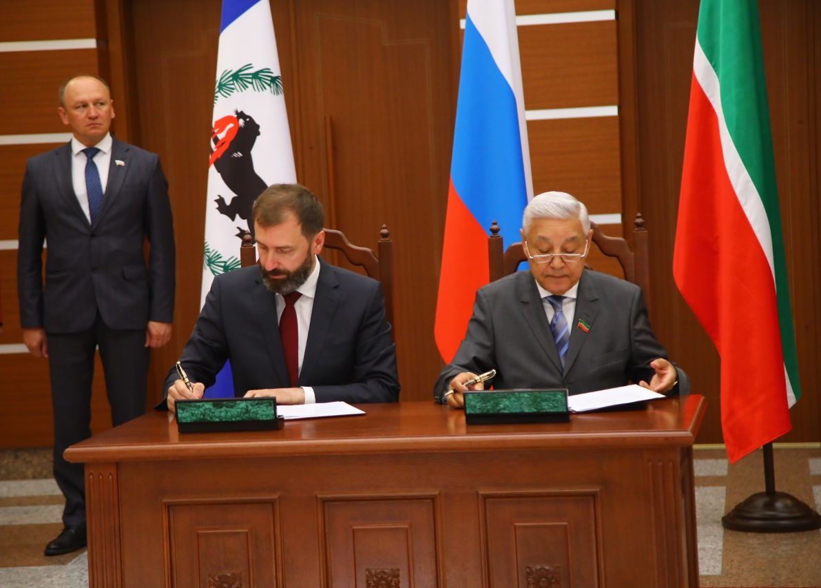18 июня главы Заксобрания Иркутской области и Госсовета Татарстана Александр Ведерников и Фарид Мухаметшин подписали соглашение о сотрудничестве